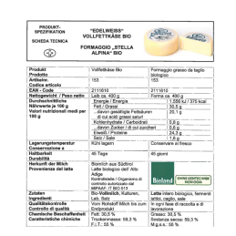 A full-fat soft cheese made from organic cow's milk with 55% fat in dry matter. The exterior has a reddish color, while the interior is white to light yellow and has a smooth texture without holes. The consistency is soft and smooth. The aroma and taste are mildly aromatic to slightly sour. Lactose-free