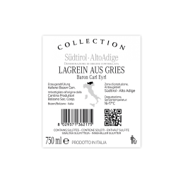 The grapes for the “Collection” line come from vineyards selected by the cellar master. The vines grow in the heart of the Lagrein growing region and produce a dense, garnet-red, well-structured wine.