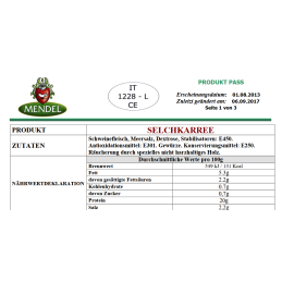 Pork that is first treated with salt and other spices depending on the manufacturer, then smoked and then hung in a cellar so that the maturing process can follow in this case for 6 months.